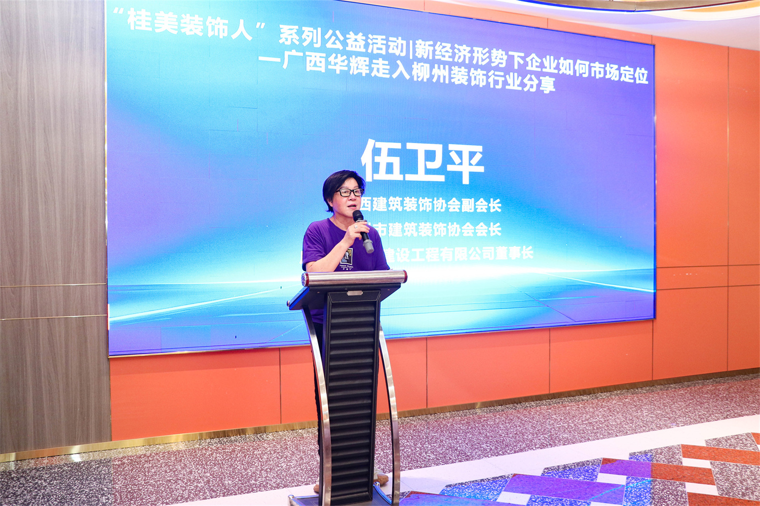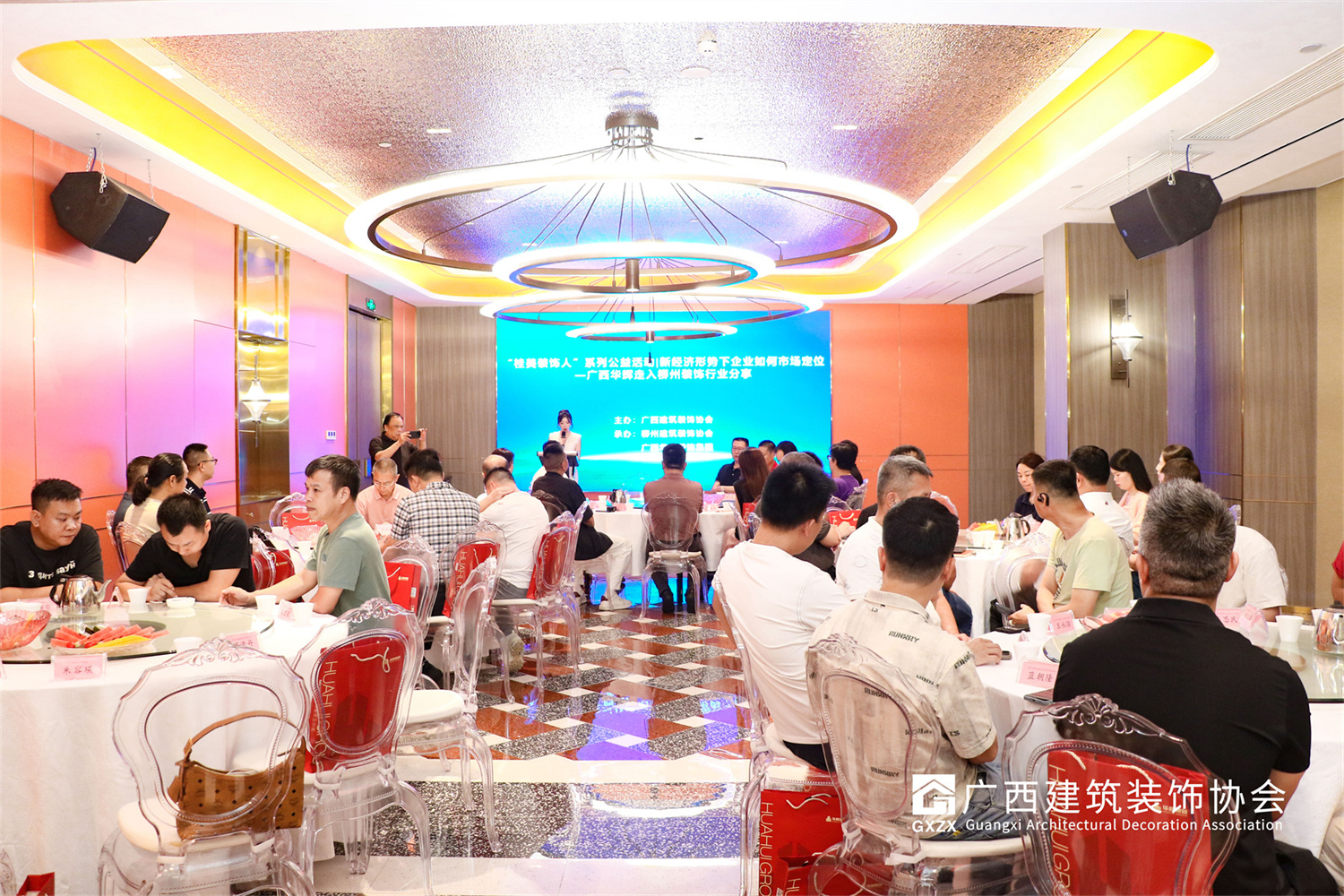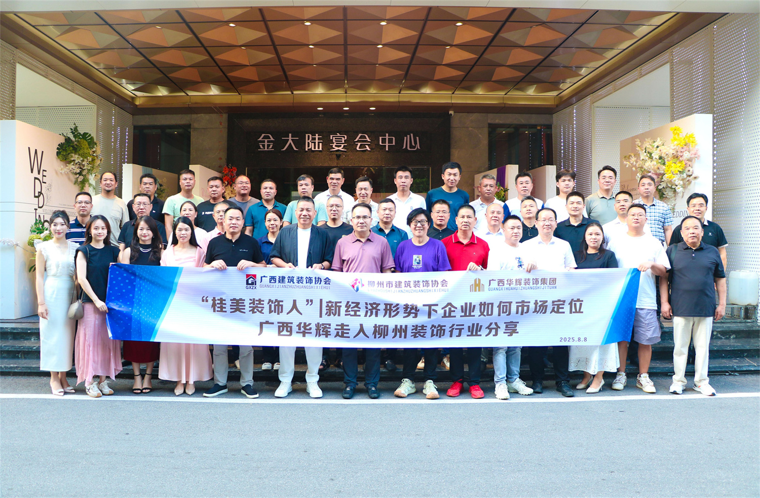 2025年8月8日,广西建筑装饰协会在柳州举办“桂美装饰人”系列公益活动——新经济形势下企业如何市场定位暨广西华辉走入柳州装饰行业分享专题会。本次活动由广西建筑装饰协会主办,柳州建筑装饰协会、广西华辉装饰集团有限公司承办,来自柳州市建筑装饰协会会员企业约50位负责人参加本次会议。